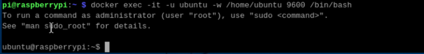 docker exec -it -u ubuntu -w /home/ubuntu 9600 /bin/bash